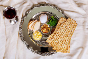 Hidangan yang tersedia terdiri dari roti matzo, ramuan pahit, tulang rusuk domba, campuran buah, kacang dan anggur. Sedang menu khusus lainnya adalah matzo kugel (sejenis puding yang terbuat dari roti matzo dan apel), roti ikan rebus (gefilte), sup ayam dengan roti matzo bola-bola.